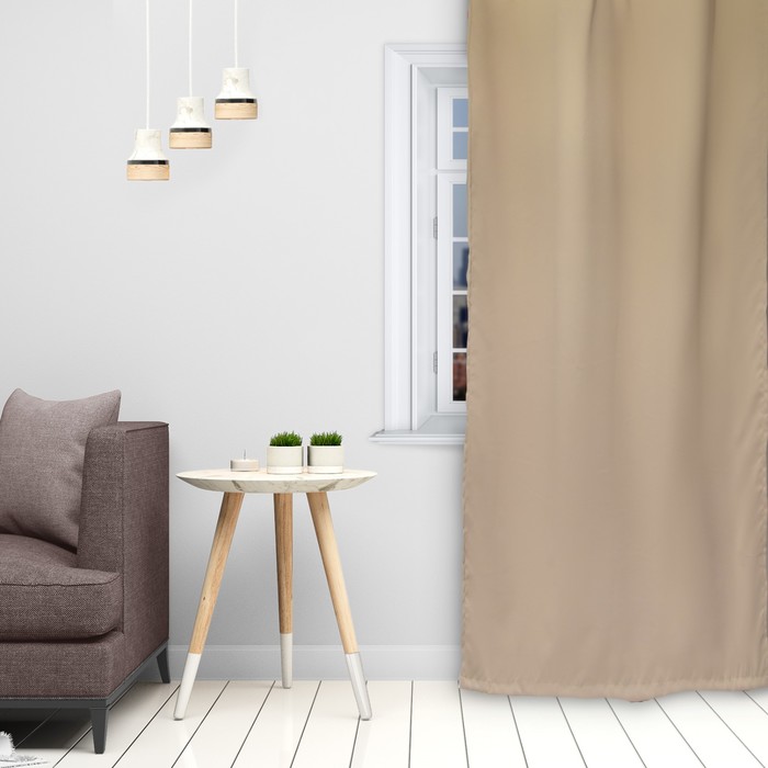 Штора портьерная «Этель» 145×265 см, двусторонний блэкаут, цвет Бежевый, пл. 240 г/м², 100% п/э