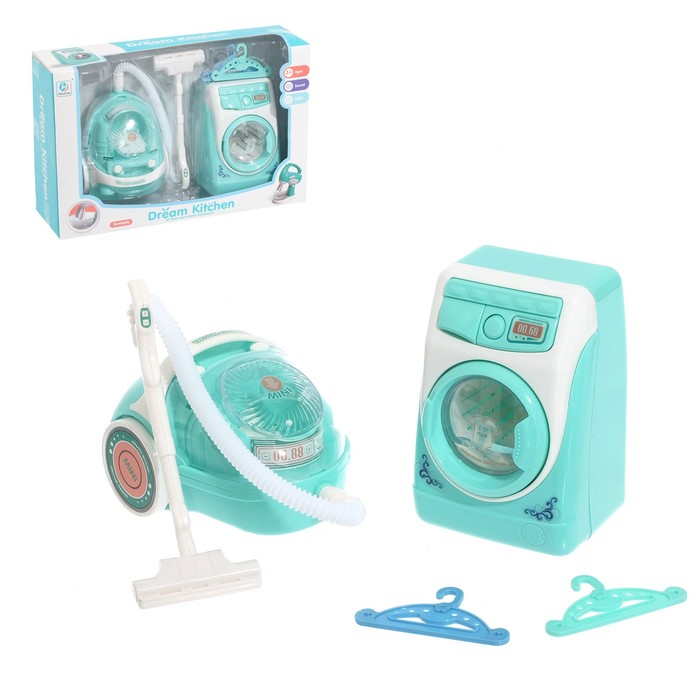 Игровой набор «Весёлая уборка» — это яркая бытовая техника для детей со светом и звуком. Ребёнок сможет подражать взрослым, «стирая» одежду и «пылесося» комнату, развивая воображение и привыкая к домашним делам через игру.