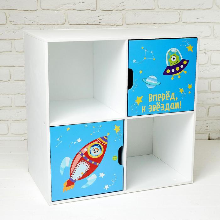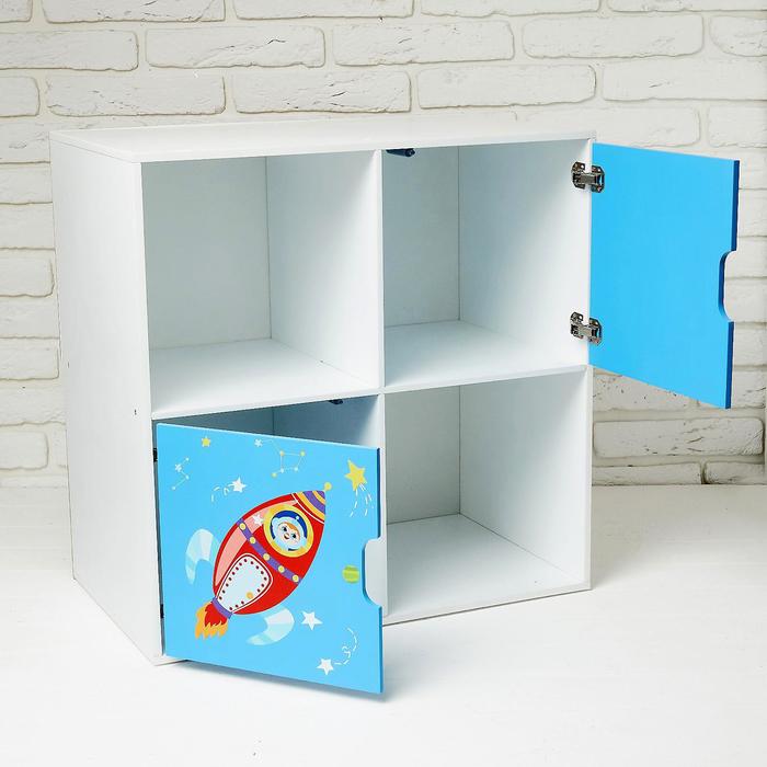 Стеллаж с дверцами послужит функциональным украшением для детской комнаты.
