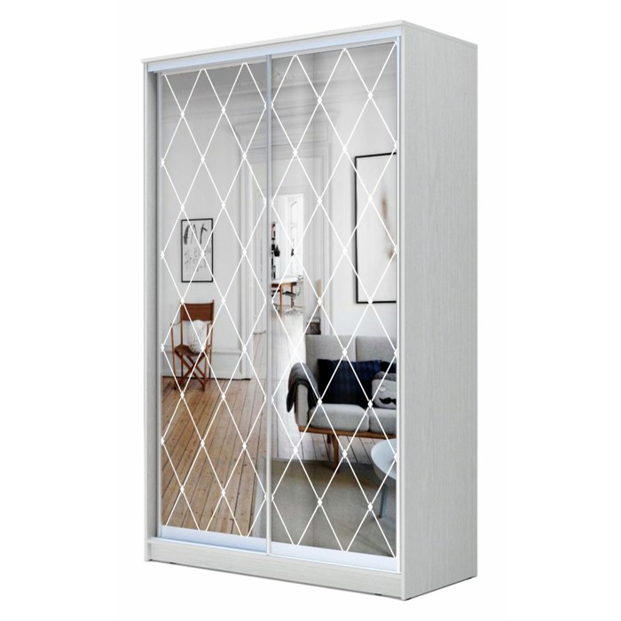Шкаф-купе Хит-22-15-66, 1500x620x2200, Белый фасад шагрень Ромб большой на зеркале