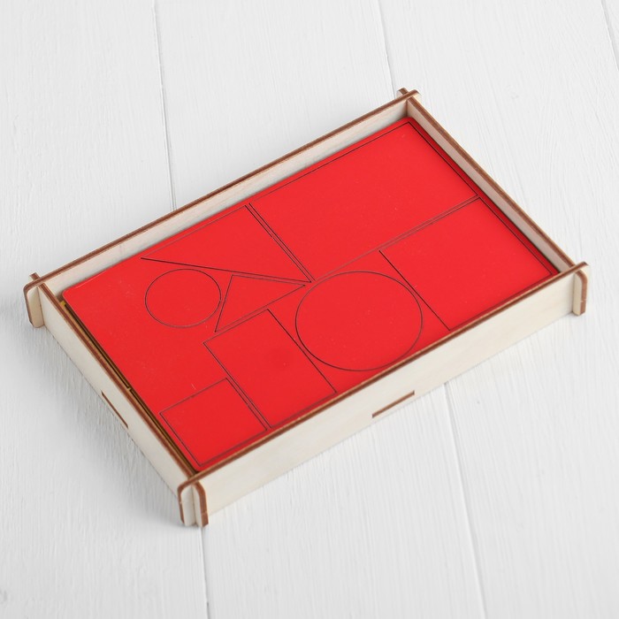 В набор входит 24 деревянные разноцветные детали различных геометрических форм.
