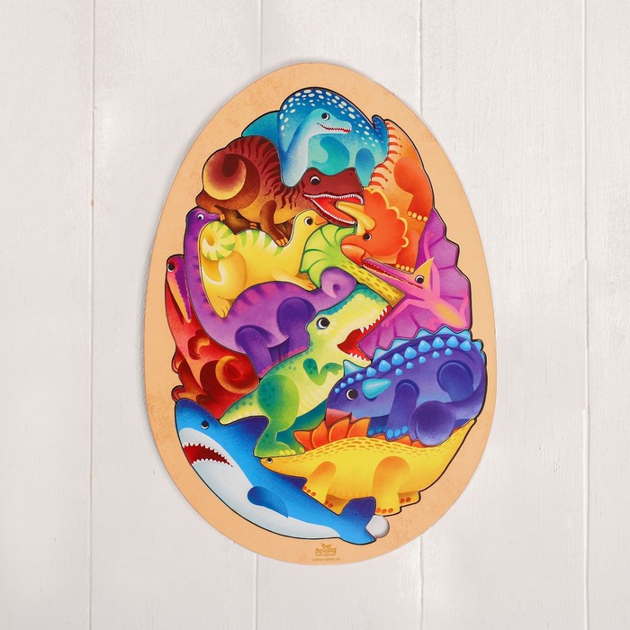 Головоломка из отдельных фигурок - это не только игра в предложенной рамке, но и игра с деталями. Перед сборкой можете попросить малыша описать каждого динозавра, назвать его отличительные черты.