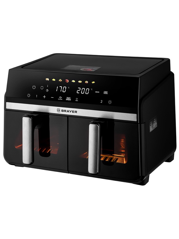 Аэрогриль сочетает в себе высокую мощность, удобство и функциональность, позволяя готовить два разных блюда одновременно. Две чаши по 5 литров дают простор для экспериментов: можно запечь мясо и приготовить гарнир, высушить фрукты или сделать хрустящий фри без лишнего масла. Сенсорная панель с LED-дисплеем делает управление понятным, а прочный термостойкий корпус обеспечивает надёжность и долгий срок службы.
