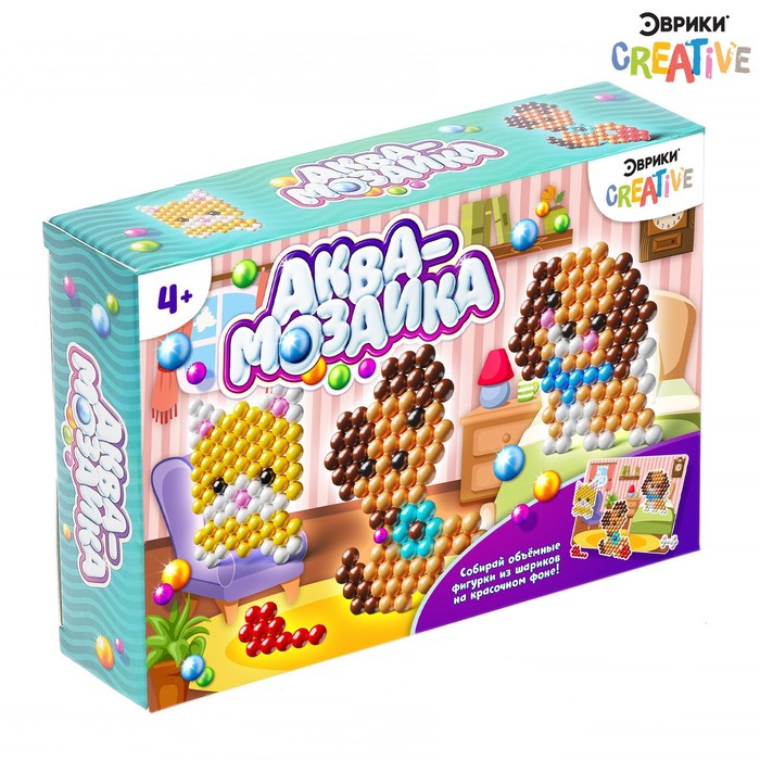 С аквамозаикой от торговой марки «Эврики» ребёнок соберёт объёмные фигурку из цветных бусинок. Детали плотно скрепляются друг с другом. Из бисера можно сделать интересную аппликацию на красочном фоне.