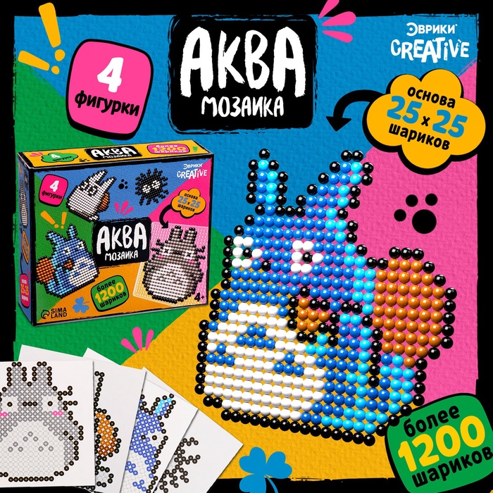 С аквамозаикой «Тоторо» ребёнок соберёт 4 объёмные фигурки из шариков-пикселей. Детали плотно скрепляются друг с другом. С поделками можно играть или украсить интерьер.