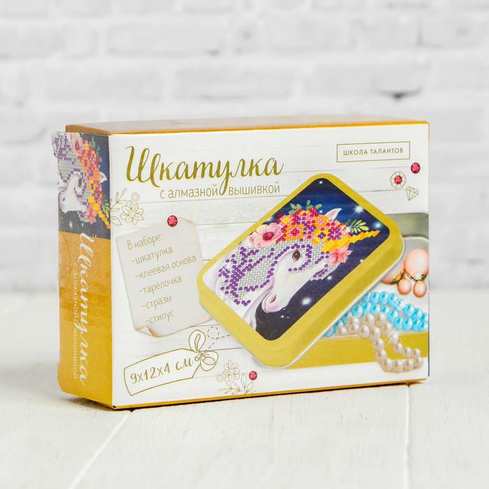 Наклейте схему с рисунком на крышку шкатулки. Приподнимите защитный слой с небольшого участка картины-основы. Чтобы вязкость клеевого состава не снижалась, не открывайте всю схему.