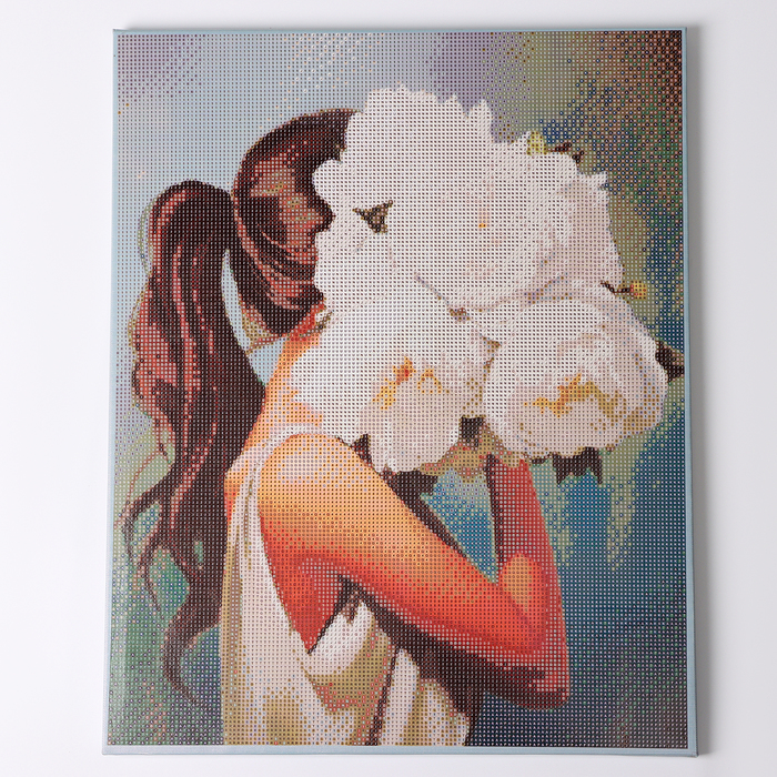 Алмазная вышивка полное заполнение "Девушка с букетом", на раме, 40*50 см