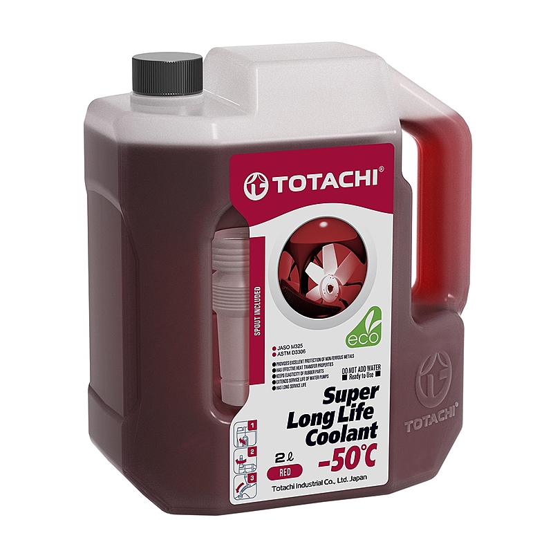 Охлаждающая жидкость Totachi Super Long Life Coolant Red -50°C на основе этиленгликоля, разработанная в соответствии с требованиями японского стандарта JIS K 2234. Предназначена для систем охлаждения автомобилей концерна Toyota. Содержит специальный пакет карбоксилатных присадок и ингибиторов на основе фосфатов для максимальной защиты систем охлаждения большинства двигателей внутреннего сгорания, в том числе с применением алюминиевых сплавов. Образует эффективную долговременную защиту деталей системы охлаждения, предохраняя от замерзания, перегрева, кавитации, коррозии и загрязнения. Отсутствие в составе силикатов, нитратов, аминов и боратов способствует снижению жестких отложений и увеличению срока службы водяных насосов. Поддерживает продленный срок эксплуатации до 5 лет / до 250 000 км при первичной заливке (по рекомендации Toyota при постгарантийном сервисном обслуживании 3 года / до 150 000 км).