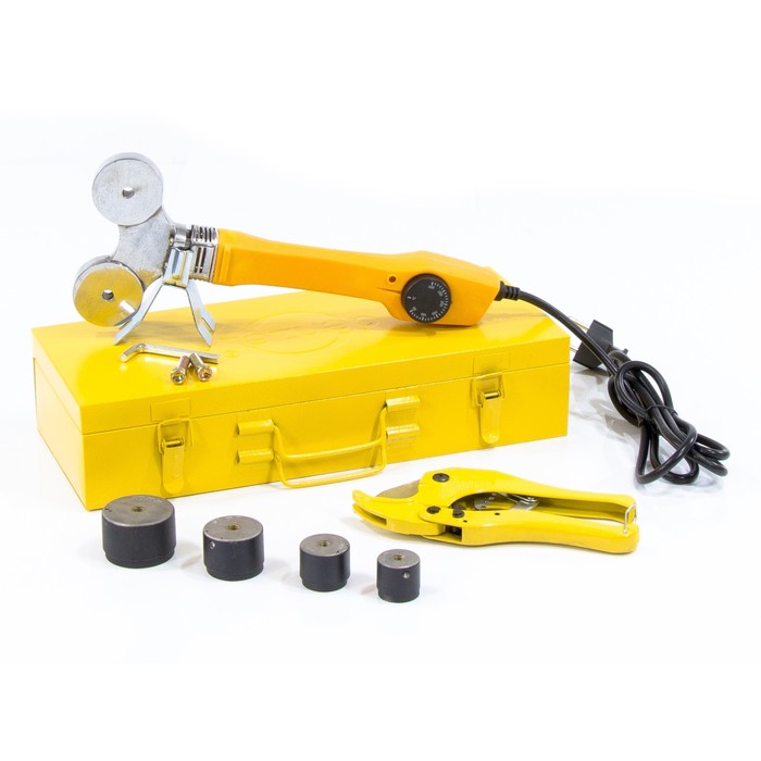 Аппарат Denzel предназначен для сварки водопроводных и канализационных полимерных труб. Оснащён терморегулятором, который позволяет выставить необходимую температуру. Сменные плашки покрыты тефлоном, поэтому при нагреве пластиковые заготовки не прилипают к ним.