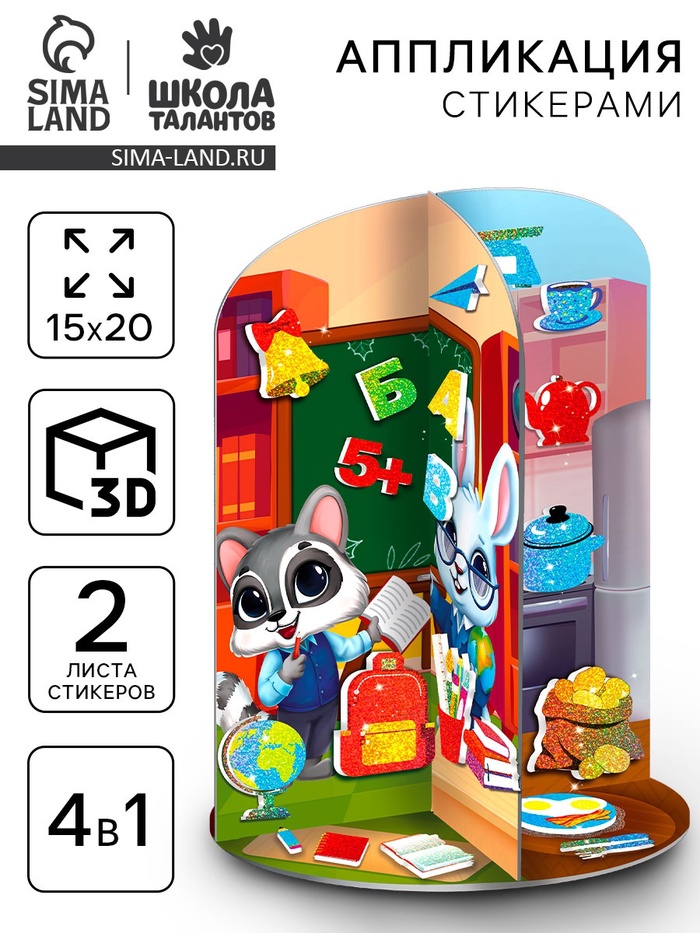 Аппликация с стикерами — это увлекательный набор для творчества, который поможет ребёнку не только интересно провести время, но и развить важные навыки. Достаточно подобрать нужные наклейки и аккуратно разместить их на основе — и яркая картинка будет готова! Такой формат творчества не требует клея и ножниц, поэтому подходит даже для самых маленьких.
