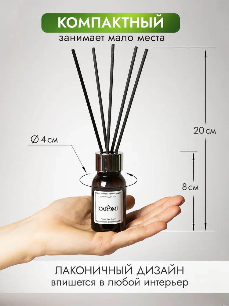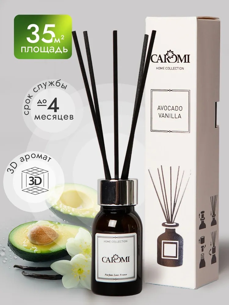 Запах парфюма для дома «Кароми Авокадо и ваниль» держится продолжительное время. Поместите фибровые палочки во флакон с аромажидкостью, и они мгновенно начнут распространять нежный стойкий аромат. Духи для помещения не только освежат воздух, но и наполнят его неповторимыми нотами, создавая атмосферу спокойствия и уюта.