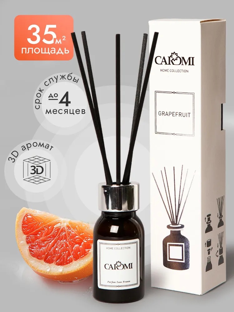 Запах парфюма для дома «Кароми Грейпфрут» держится продолжительное время. Поместите фибровые палочки во флакон с аромажидкостью, и они мгновенно начнут распространять нежный стойкий аромат. Духи для помещения не только освежат воздух, но и наполнят его неповторимыми нотами, создавая атмосферу спокойствия и уюта.