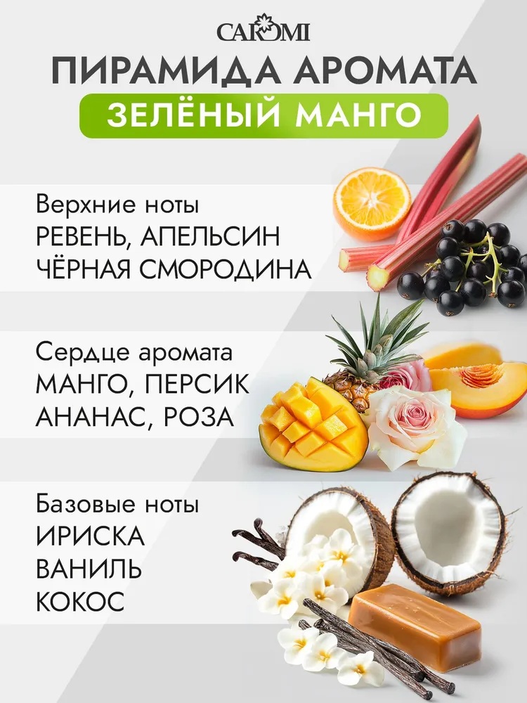 Аромадиффузор с палочками Caromi Green mango создан на основе французских парфюмированных отдушек премиум-качества. Ароматизатор для дома сочетает в себе стильный дизайн и стойкий аромат. Изящный стеклянный флакон удачно впишется в любой интерьер и станет изысканным элементом декора. А красивая подарочная упаковка позволит сделать презент любимому человеку.