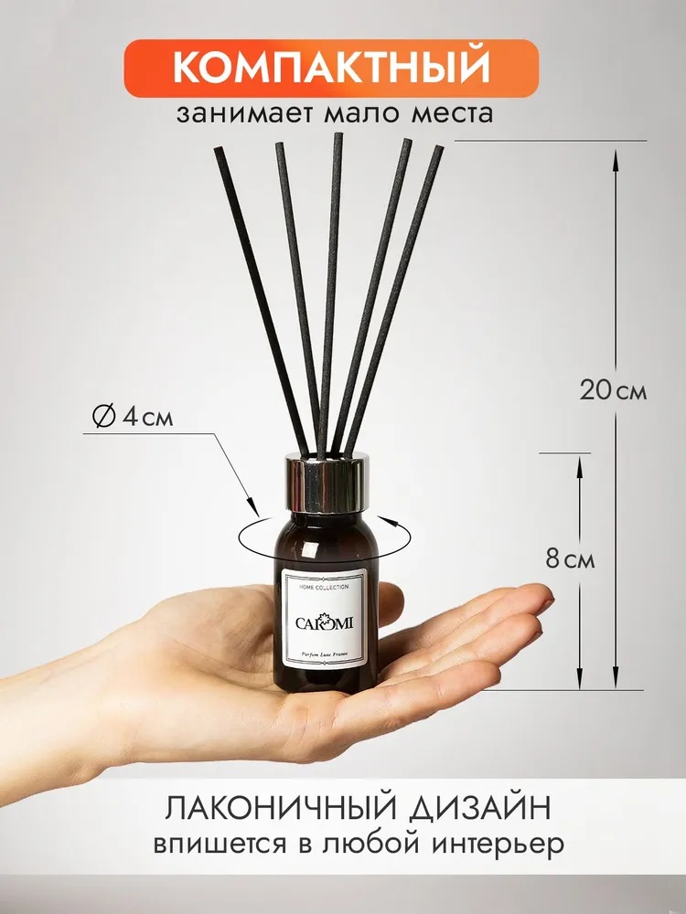 Запах парфюма для дома «Кароми Мускус и ваниль» держится продолжительное время. Поместите фибровые палочки во флакон с аромажидкостью, и они мгновенно начнут распространять нежный стойкий аромат. Духи для помещения не только освежат воздух, но и наполнят его неповторимыми нотами, создавая атмосферу спокойствия и уюта.