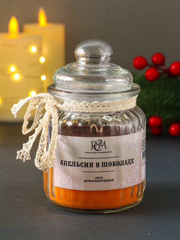 Создайте атмосферу уюта и праздника! Ароматическая свеча «Апельсин в шоколаде» — это сочетание сочной цитрусовой свежести и тёплых, сладких нот десерта. Горящая свеча наполняет комнату уютным и поднимающим настроение ароматом.
