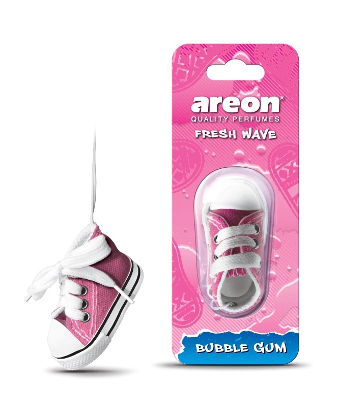 Ароматизаторы Areon давно завоевали популярность на рынке продукции для авто. В разработке концепций для ароматизаторов болгарского производителя принимают участие всемирно известные парфюмеры. Высокое качество, натуральное сырье, большой ассортимент освежителей в разных формах выпуска, элегантный дизайн сделали продукцию бренда популярной в более чем 60 странах мира. Коллекция Areon Fresh Wave представлена в виде симпатичных аромаигрушек. Кроме основной задачи освежать воздух, это еще и оригинальный элемент декора. Миниатюрная симпатичная игрушка на зеркале заднего вида в авто привлекает внимание, но главное достоинство "ареончика" - отменное освежение салона. Подвесные кеды сделаны из ароматизированного геля плотной фактуры и текстиля, пропитанного аромасоставом. Несмотря на миниатюрные размеры игрушки, она обеспечивает свежий воздух на продолжительный период времени. Использовать Fresh Wave очень легко: просто откройте упаковку, разместите игрушку на зеркале заднего вида и наслаждайтесь приятным ароматом. Примерный срок службы: 30-40 дней. Жизнерадостный и шаловливый запах жвачки - аромат беззаботного детства. Он сразу же вызывает невольные ассоциации с веселым смехом, сияющими глазами, легкостью и беспечностью, которая так свойственна детям. Недаром Bubble Gum - один из самых популярных ароматов в юношеской парфюмерии, современные люди не торопятся взрослеть! Автомобильный ароматизатор Bubble Gum не только понравится вашим маленьким пассажирам, но и непременно заставит улыбнуться и смягчиться даже самого строгого сотрудника дорожной полиции!