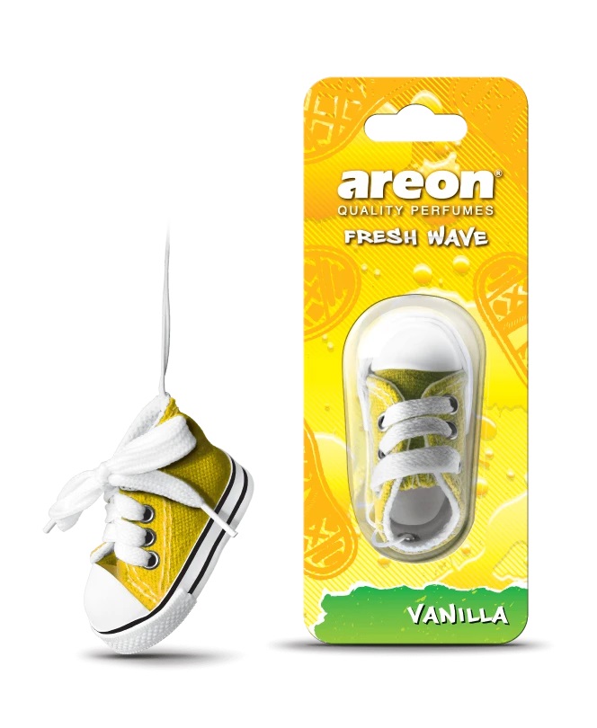Ароматизаторы Areon давно завоевали популярность на рынке продукции для авто. В разработке концепций для ароматизаторов болгарского производителя принимают участие всемирно известные парфюмеры. Высокое качество, натуральное сырье, большой ассортимент освежителей в разных формах выпуска, элегантный дизайн сделали продукцию бренда популярной в более чем 60 странах мира. Коллекция Areon Fresh Wave представлена в виде симпатичных аромаигрушек. Кроме основной задачи освежать воздух, это еще и оригинальный элемент декора. Миниатюрная симпатичная игрушка на зеркале заднего вида в авто привлекает внимание, но главное достоинство "ареончика" - отменное освежение салона. Подвесные кеды сделаны из ароматизированного геля плотной фактуры и текстиля, пропитанного аромасоставом. Несмотря на миниатюрные размеры игрушки, она обеспечивает свежий воздух на продолжительный период времени. Использовать Fresh Wave очень легко: просто откройте упаковку, разместите игрушку на зеркале заднего вида и наслаждайтесь приятным ароматом. Примерный срок службы: 30-40 дней. Загадочный и легендарный запах ванили, это один из самых известных афродизиаков - ароматов любви. Ванильный запах заставляет вас почувствовать себя в безопасности, успокаивает, ликвидирует раздражение и гнев, создает обстановку доверия. Дарит покой, гармонию, ощущение радости жизни. Ароматерапевты уверяют, что запах ванили улучшают память и повышает способность человека к концентрации. Согласитесь, это совсем не лишние качества для тех, кто находится за рулем автомобиля!
