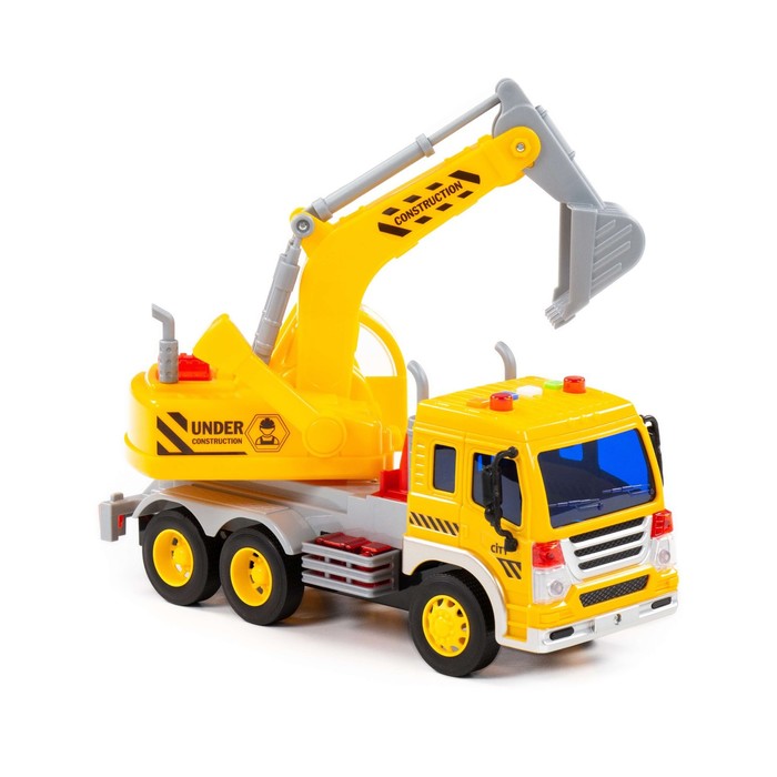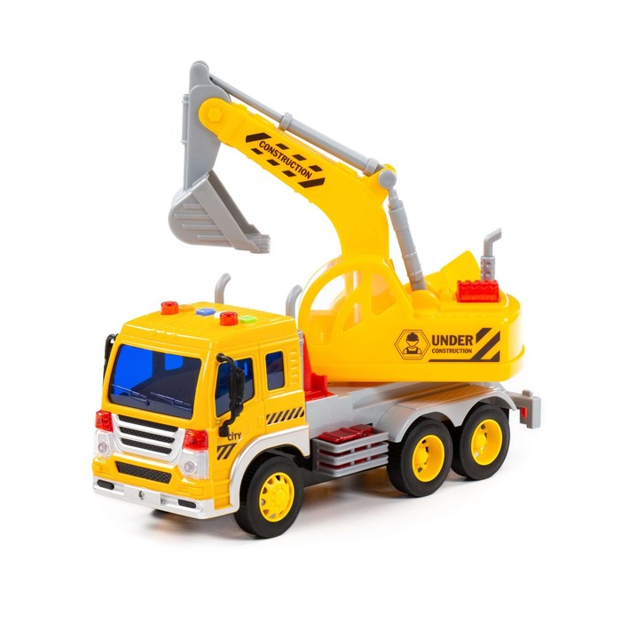 Автомобиль-экскаватор «Сити», инерционный, со светом и звуком, цвет жёлтый