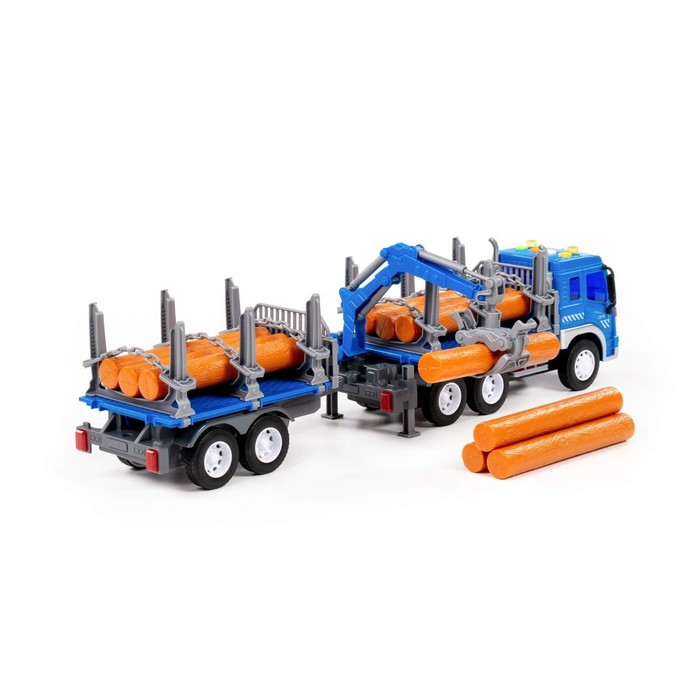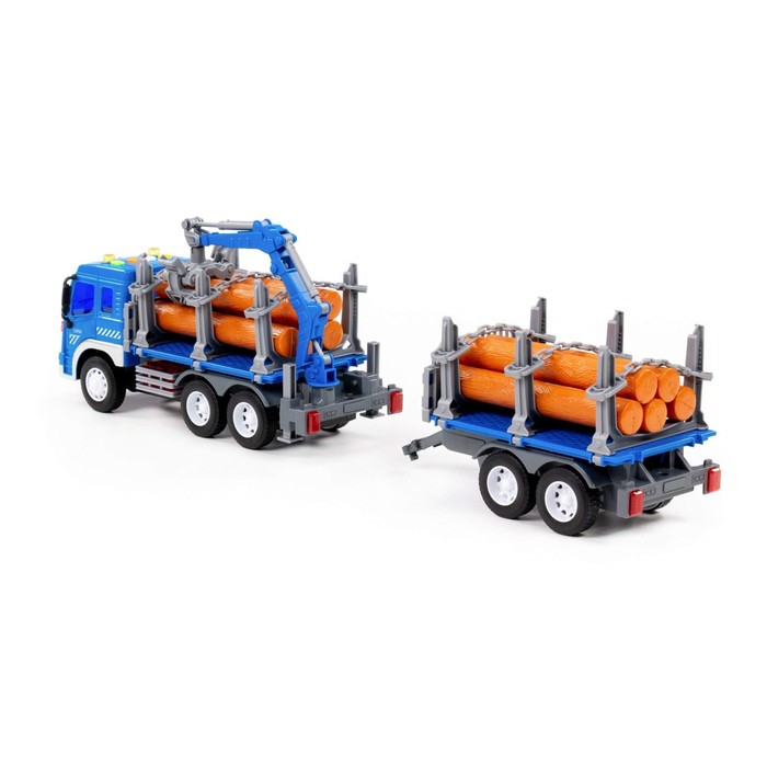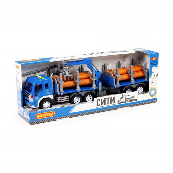 Автомобиль-лесовоз инерционный «Сити» с прицепом, свет, звук, цвет синий