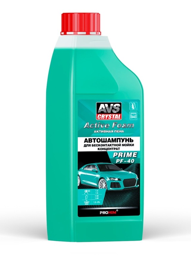 Автошампунь AVS Active Foam Prime PF-40 – низкощелочное концентрированное средство для бесконтактной мойки автомобильного транспорта. Удаляет дорожную пыль, масло, грязь, следы насекомых. Легко смывается водой и не обладает выраженным запахом. Безопасен для пластика, резины и сплавов цветных металлов. Содержит ингибитор коррозии. Не оставляет разводов. Возможно использование в системах «дозатрон». Рекомендовано для всесезонного использования.