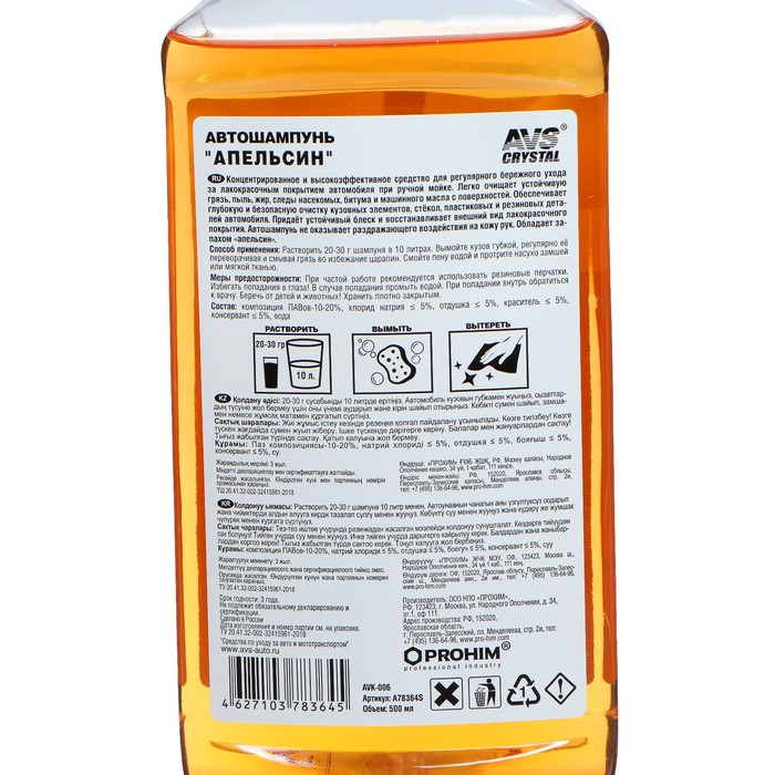 Концентрированное и высокоэффективное средство для регулярного бережного ухода за лакокрасочным покрытием автомобиля при ручной мойке. Легко очищает устойчивую грязь, пыль, жир, следы насекомых, битума и машинного масла с поверхностей. Обеспечивает глубокую и безопасную очистку кузовных элементов, стёкол, пластиковых и резиновых деталей автомобиля. Придаёт устойчивый блеск и восстанавливает внешний вид лакокрасочного покрытия. Автошампунь не оказывает раздражающего воздействия на кожу рук. Обладает запахом "апельсин".