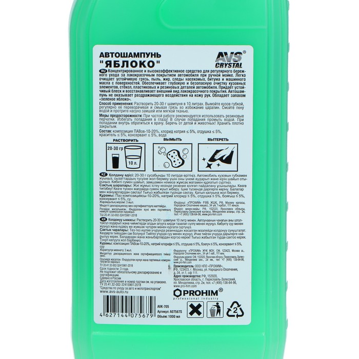 Концентрированное и высокоэффективное средство для регулярного бережного ухода за лакокрасочным покрытием автомобиля при ручной мойке. Легко очищает устойчивую грязь, пыль, жир, следы насекомых, битума и машинного масла с поверхностей. Обеспечивает глубокую и безопасную очистку кузовных элементов, стёкол, пластиковых и резиновых деталей автомобиля. Придаёт устойчивый блеск и восстанавливает внешний вид лакокрасочного покрытия. Автошампунь не оказывает раздражающего воздействия на кожу рук. Обладает запахом "зеленое яблоко".