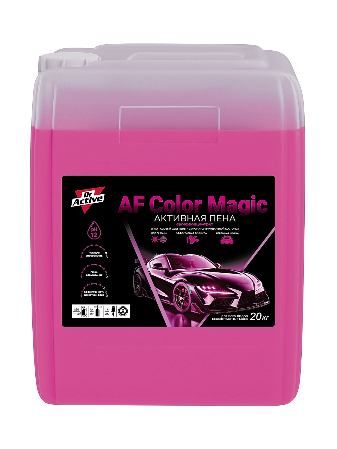 Автошампунь Dr. Activ AF Color Magic – концентрированное высокопенное средство для бесконтактной мойки грузового и легкового автотранспорта. Эффективно удаляет любые дорожные загрязнения. Легко смывается с поверхности. Бережно относится к ЛКП, никелированным, алюминиевым молдингам, пластику. Содержит антикоррозионные присадки. В процессе применения на кузове пена меняет цвет.