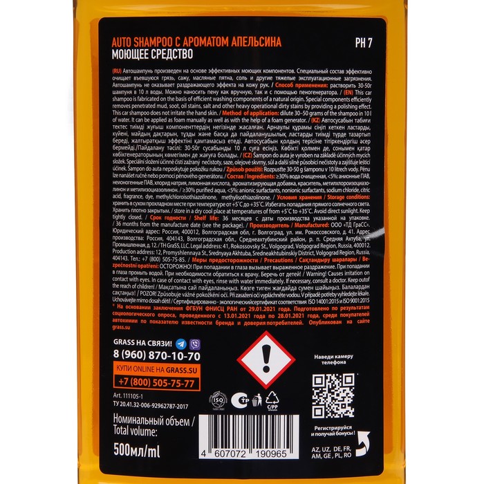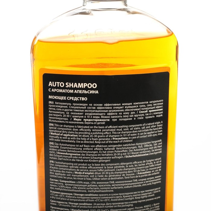 Автошампунь произведен на основе эффективных моющих компонентов. Специальный состав эффективно очищает въевшуюся грязь, сажу, масляные пятна, соль и другие тяжелые эксплуатационные загрязнения, обеспечивает полирующий эффект. Автошампунь не оказывает раздражающего эффекта на кожу рук.