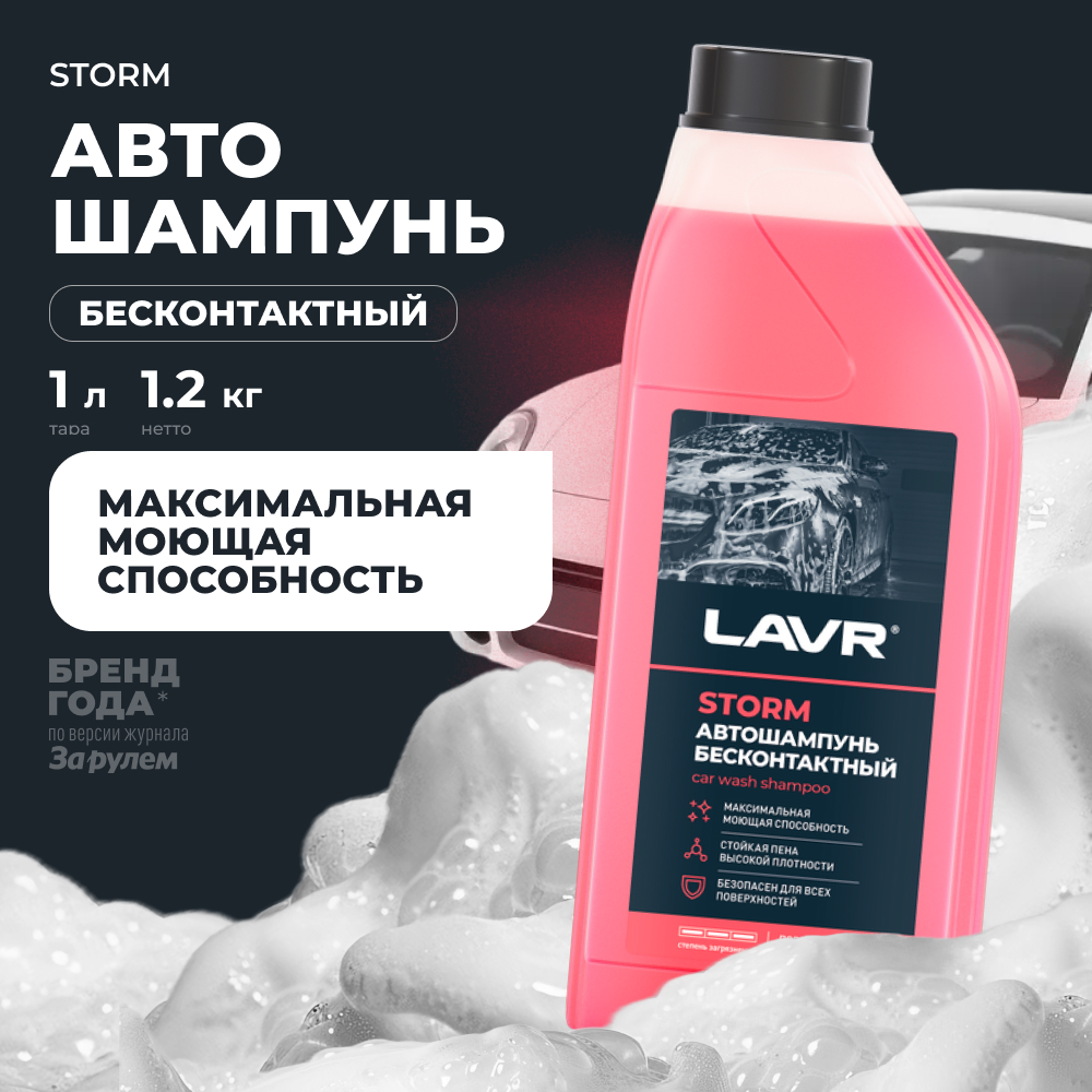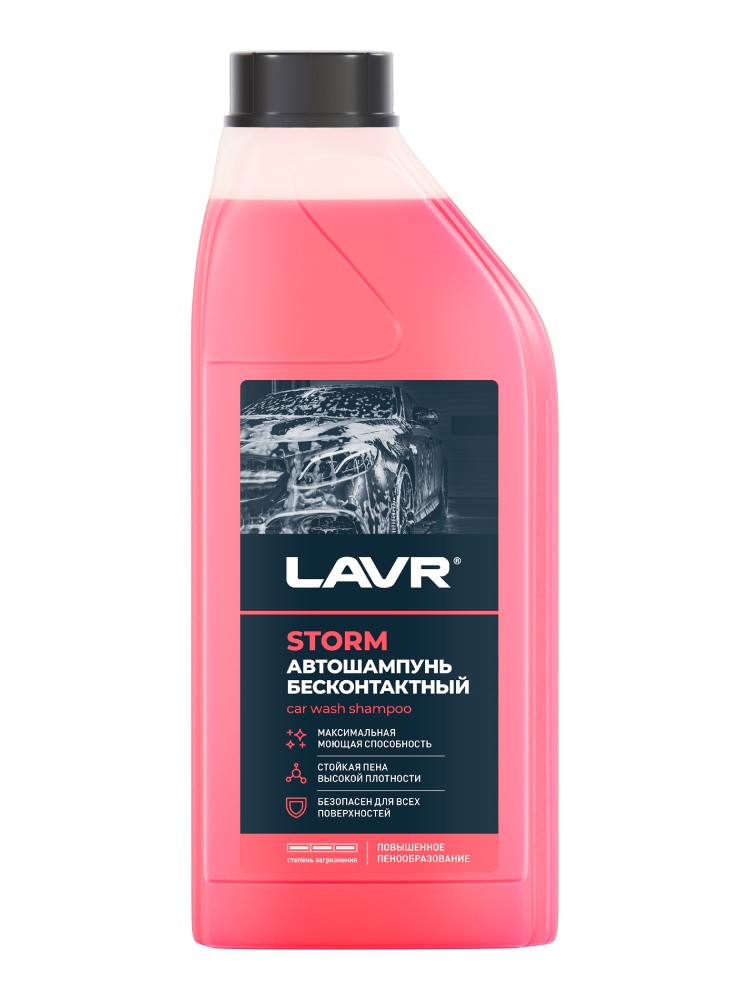 Активная пена высокой плотности автошампуня LAVR Storm удаляет стойкие эксплуатационные загрязнения. Полностью безопасен для пластика, резины и сплавов цветных металлов. Легко смывается, не оставляя на поверхности разводы и белесый налет. Подходит для регулярного применения в воде нормальной жесткости.