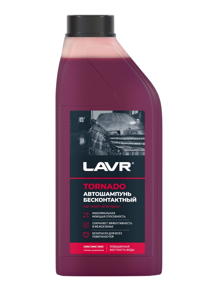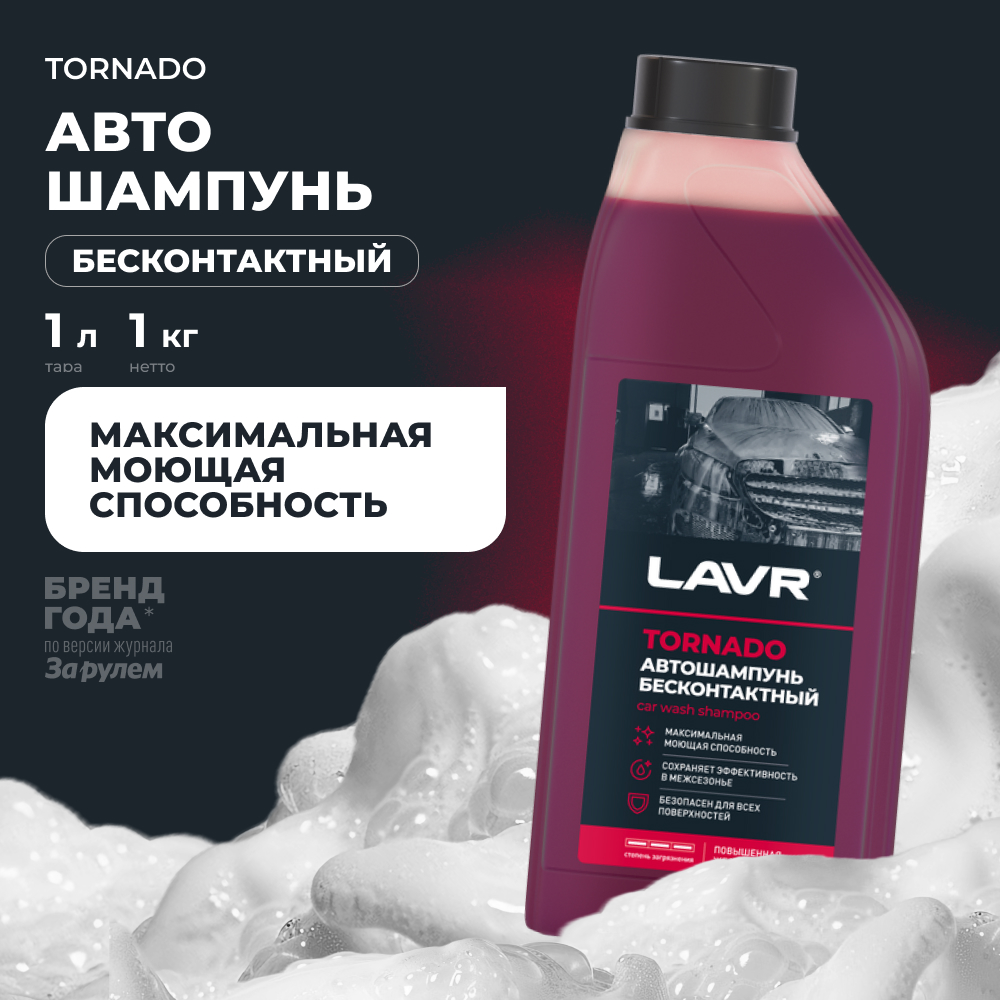 Активная пена высокой плотности автошампуня LAVR Tornado удаляет стойкие эксплуатационные загрязнения. Полностью безопасен для пластика, резины и сплавов цветных металлов. Легко смывается, не оставляя на поверхности разводы и белесый налет. Сохраняет эффективность в воде из скважины и во время таяния снега.