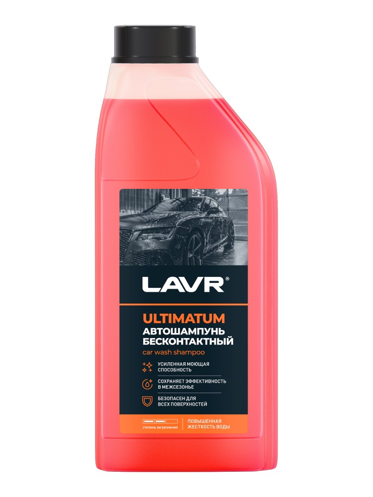 Активная пена высокой плотности автошампуня LAVR Ultimatum удаляет все виды эксплуатационных загрязнений. Полностью безопасен для пластика, резины и сплавов цветных металлов. Легко смывается, не оставляя на поверхности разводы и белесый налет. Сохраняет эффективность в воде из скважины и во время таяния снега.