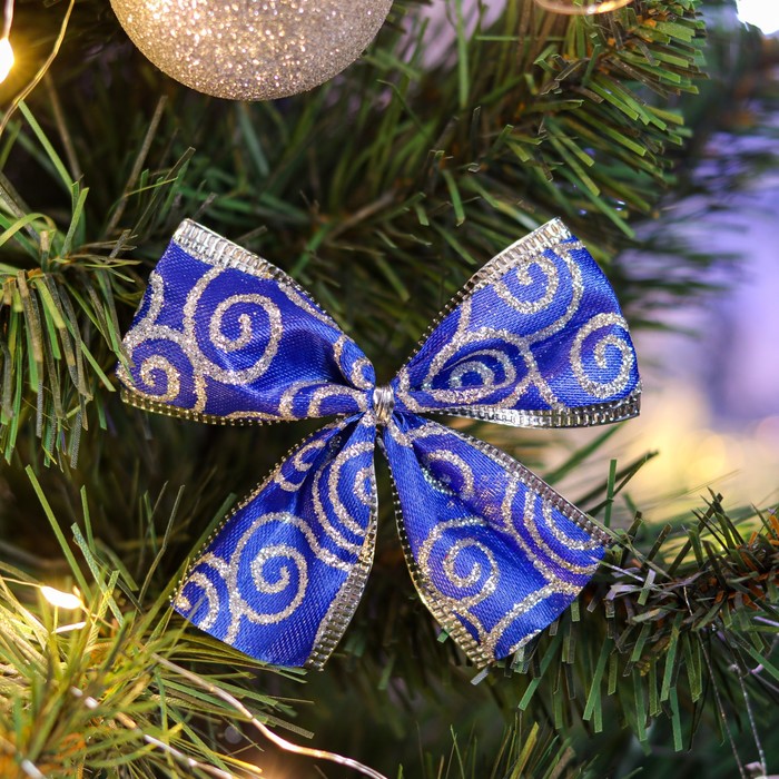 Бант новогодний, праздничный "Палермо", синий, 8 х 7 см