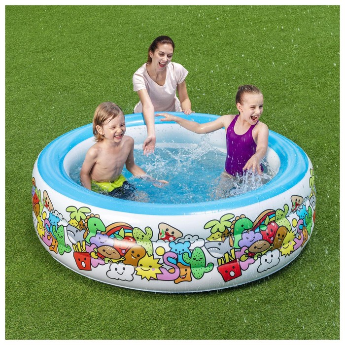 Бассейн не оставит равнодушным ни одного ребёнка. В нём можно купаться, плескаться и поиграть в игрушки. Бассейн изготовлен из прочного ПВХ, устойчивого к воздействию солнечных лучей, мелким повреждениям, маслам и бензину. А значит, он будет радовать вас не один сезон. Используйте его в любое время года. Летом на природе ребёнок может плескаться и радоваться брызгам, а зимой наполните бассейн пластиковыми шариками и используйте его как игровой манеж.