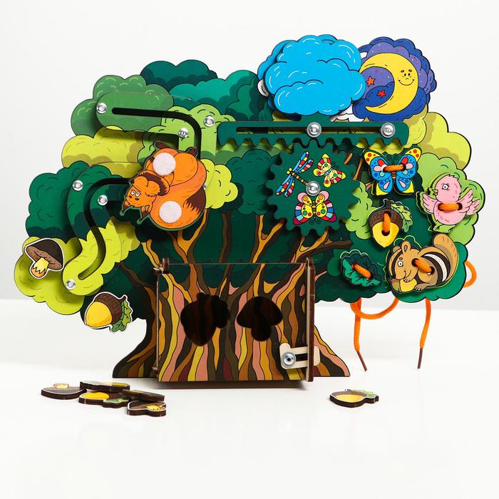 Игрушка «Бизидуб» изготовлена из экологически чистого дерева. Бизиборд даст ребёнку возможность самостоятельно и безопасно изучить интересные бытовые объекты: щеколды и замки, липучки, шнуровку, прищепки и др.