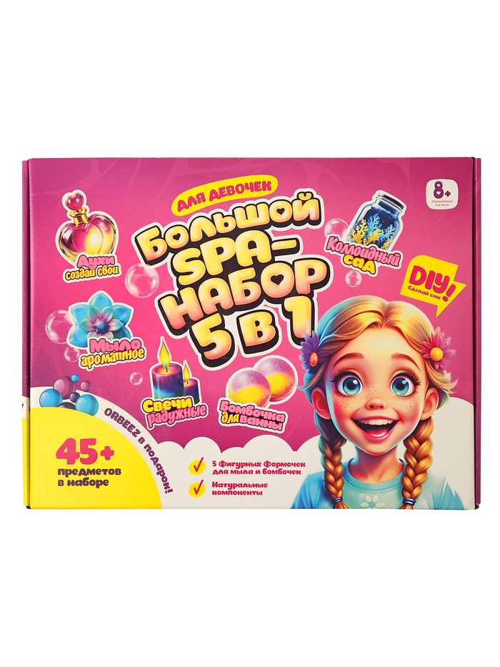 Погрузитесь в атмосферу творчества и ароматных экспериментов вместе с Большим SPA-набором. Он создан специально для девочек, которые мечтают создавать собственные ароматные и уходовые средства. Набор превращает простой процесс смешивания ингредиентов в увлекательную игру и помогает ребёнку почувствовать себя настоящим мастером.