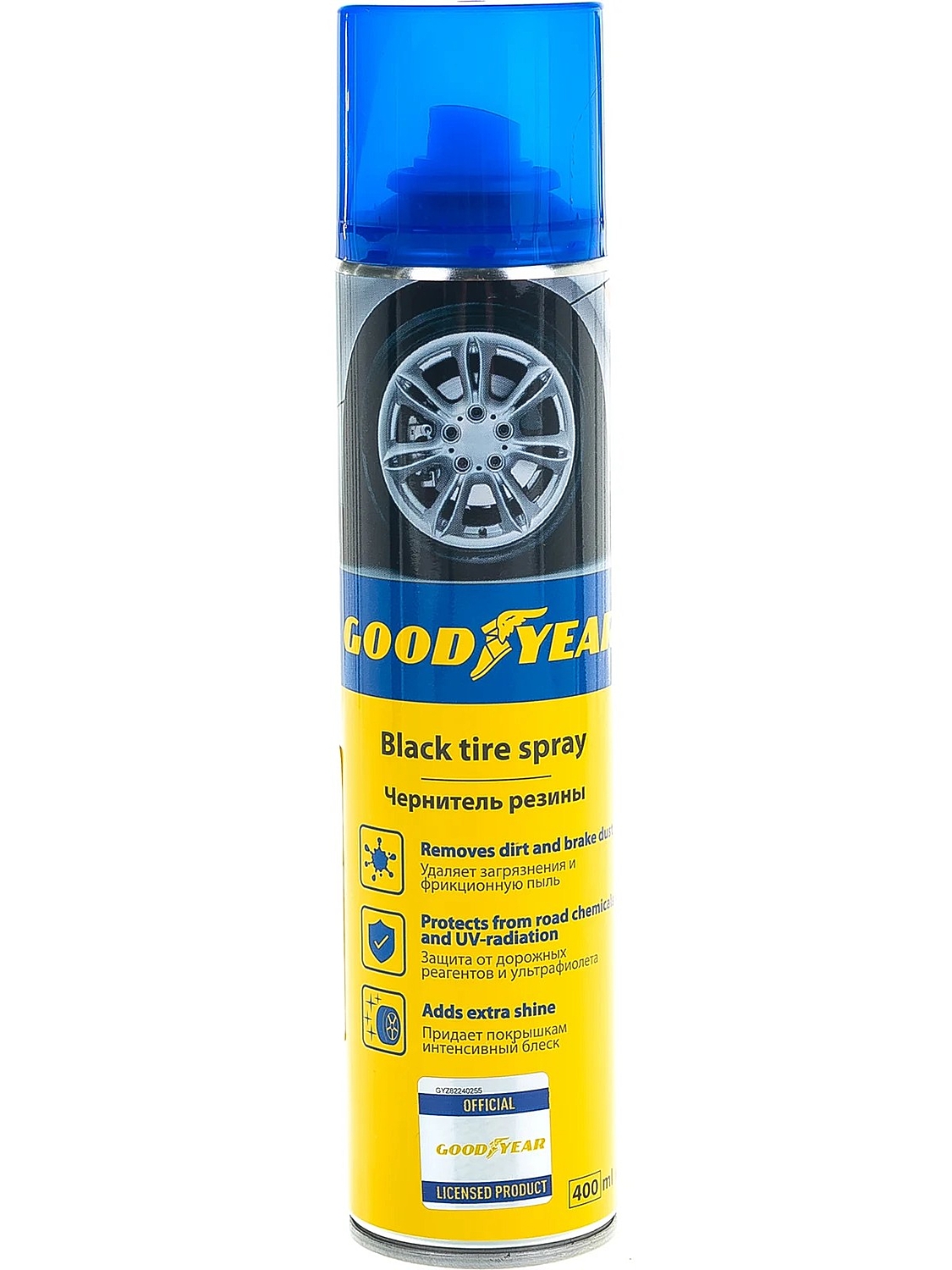 Чернитель резины Goodyear GY000700 применяется для очищения и улучшения внешнего вида резины автомобиля. Позволяет вернуть яркий интенсивный цвет и защитить шины от дорожных реагентов и ультрафиолета.