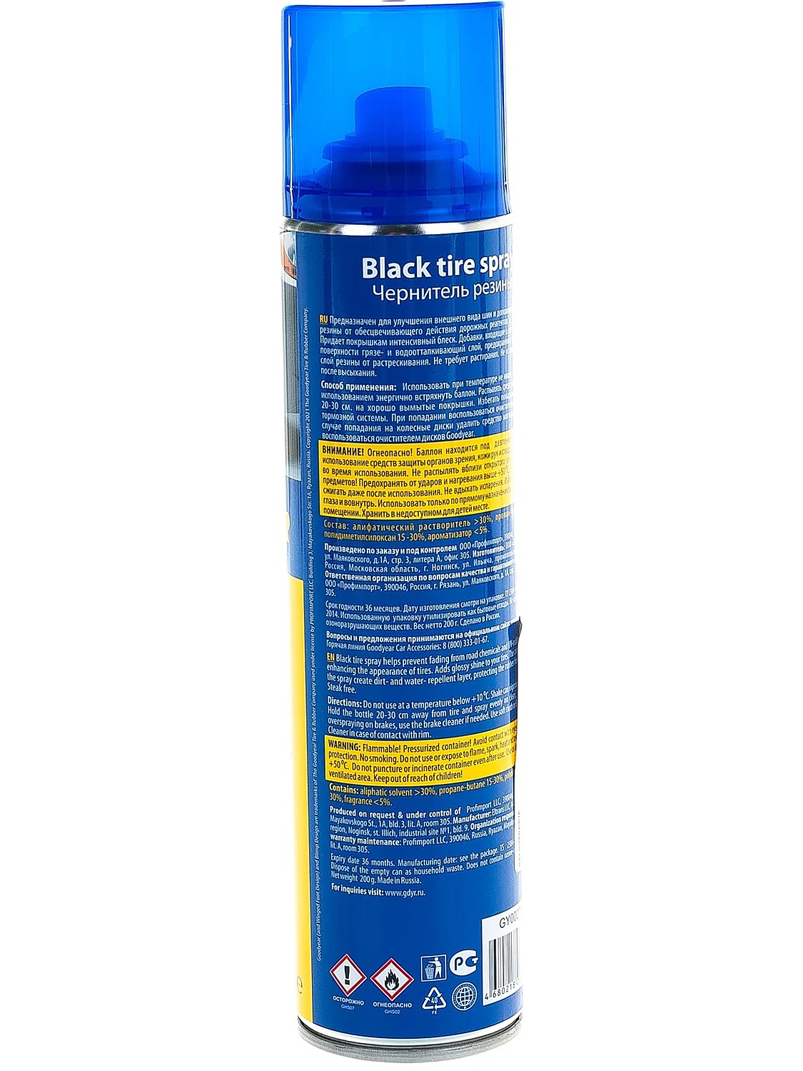 Упаковка-аэрозоль позволяет удобно наносить средство на поверхность резины.