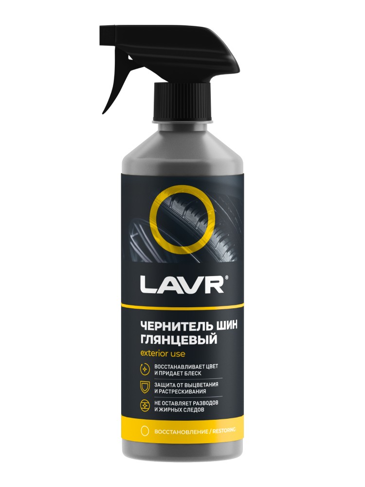 Чернитель шин LAVR Ln1475 – пропитка для автомобильных шин и резиновых поверхностей на водной основе с добавлением силикона.