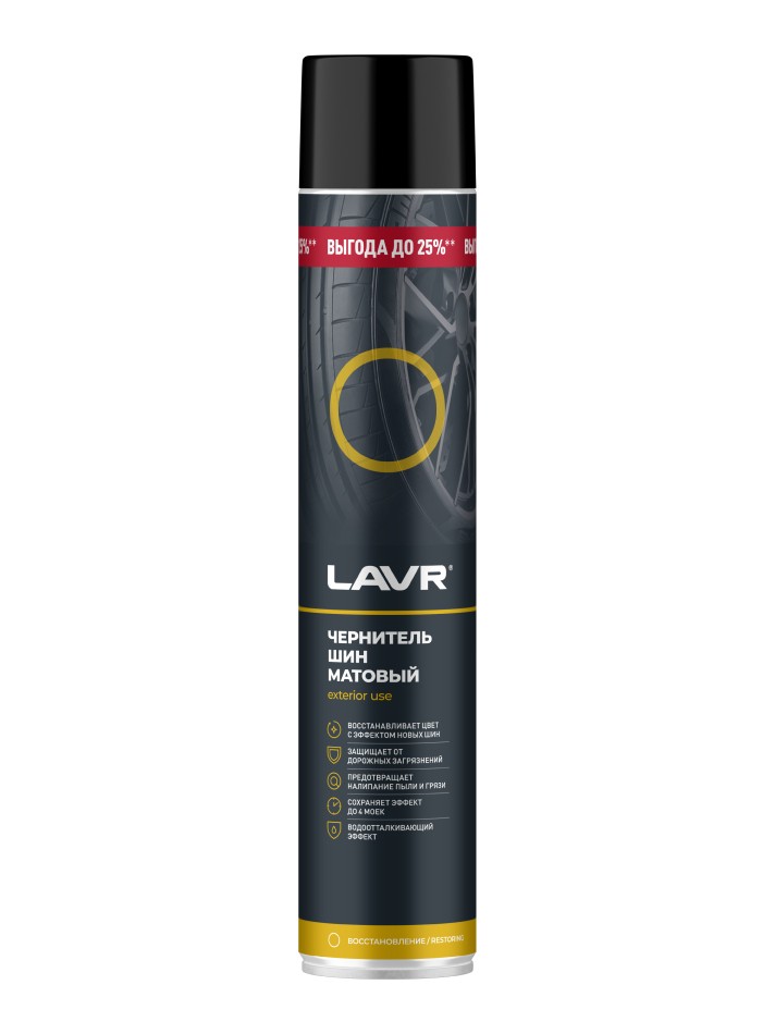 Чернитель шин LAVR Ln2458 – средство для восстановления глубокого черного цвета бамперов и шин с матовым эффектом.