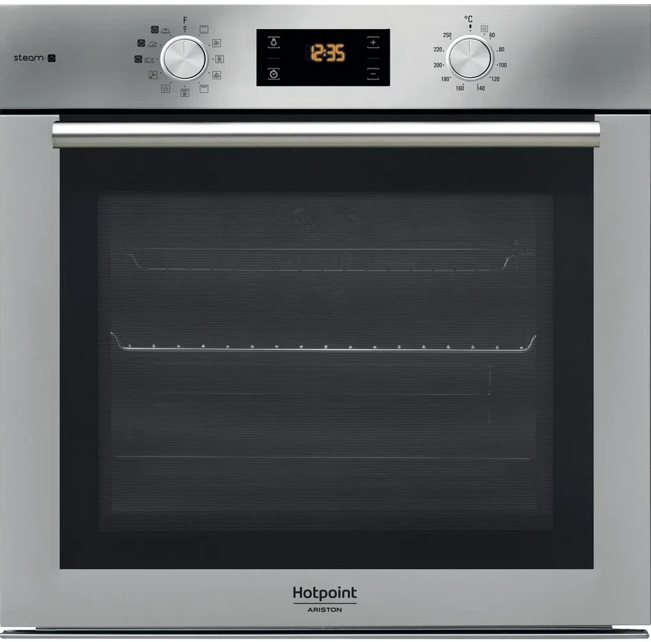 В электрический духовой шкаф Hotpoint FA4S 842 J IX HA встроено 11 различных программ, в том числе конвекция и гриль мощностью 1800 Вт. Безопасность обеспечивается возможностью защитного отключения, при котором устройство автоматически выключается при слишком долгой работе шкафа. Таймер и часы позволяют следить за временем приготовления пищи. Информация отображается на дисплее, о готовности блюда сообщает звуковой сигнал. Вентилятор охлаждения предупреждает образование конденсата. Объедините функцию приготовления на пару с традиционным способом запекания, обеспечивая оптимальную влажность и распределение тепла. Требуется всего лишь долить воды в специальную емкость, включить духовой шкаф и выбрать нужную программу: ВЫПЕЧКА, МЯСО или РЫБА.