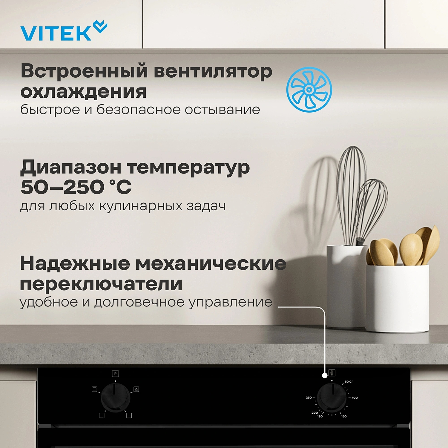 Встроенный вентилятор охлаждения быстро выводит избыточное тепло после готовки, что увеличивает срок службы устройства и предотвращает перегрев.