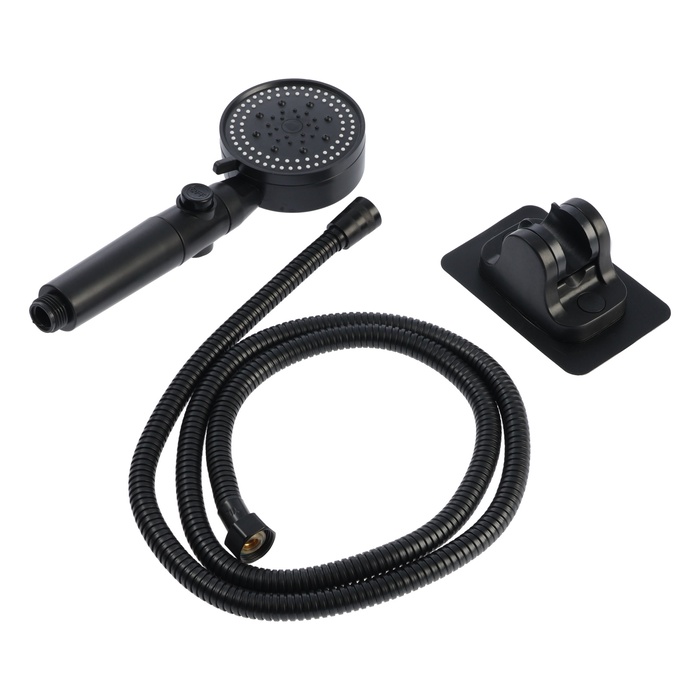 Душевая лейка 5 режимов со шлангом, самоклеящийся держатель, крепеж в комплекте.