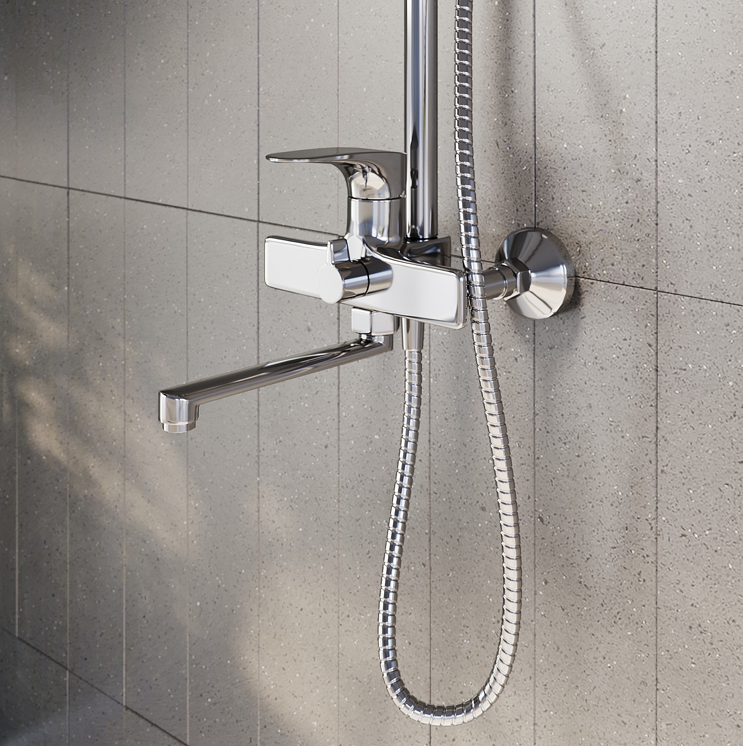 Душевая система AVRORA Nova AV6040 хром — классическая модель в хромированном исполнении, отличающаяся блеском и долговечностью покрытия. Конструкция включает поворотный излив для удобного наполнения ванны, круглый верхний душ, ручную лейку с многофункциональными режимами и штангу с регулируемым держателем. Управление осуществляется однорычажным механизмом с керамическим картриджем. Шланг длиной 1500 мм устойчив к перекручиванию. Хромированное покрытие защищает от коррозии и облегчает уход за поверхностью. Универсальный дизайн подходит для разных стилей интерьера ванных комнат.