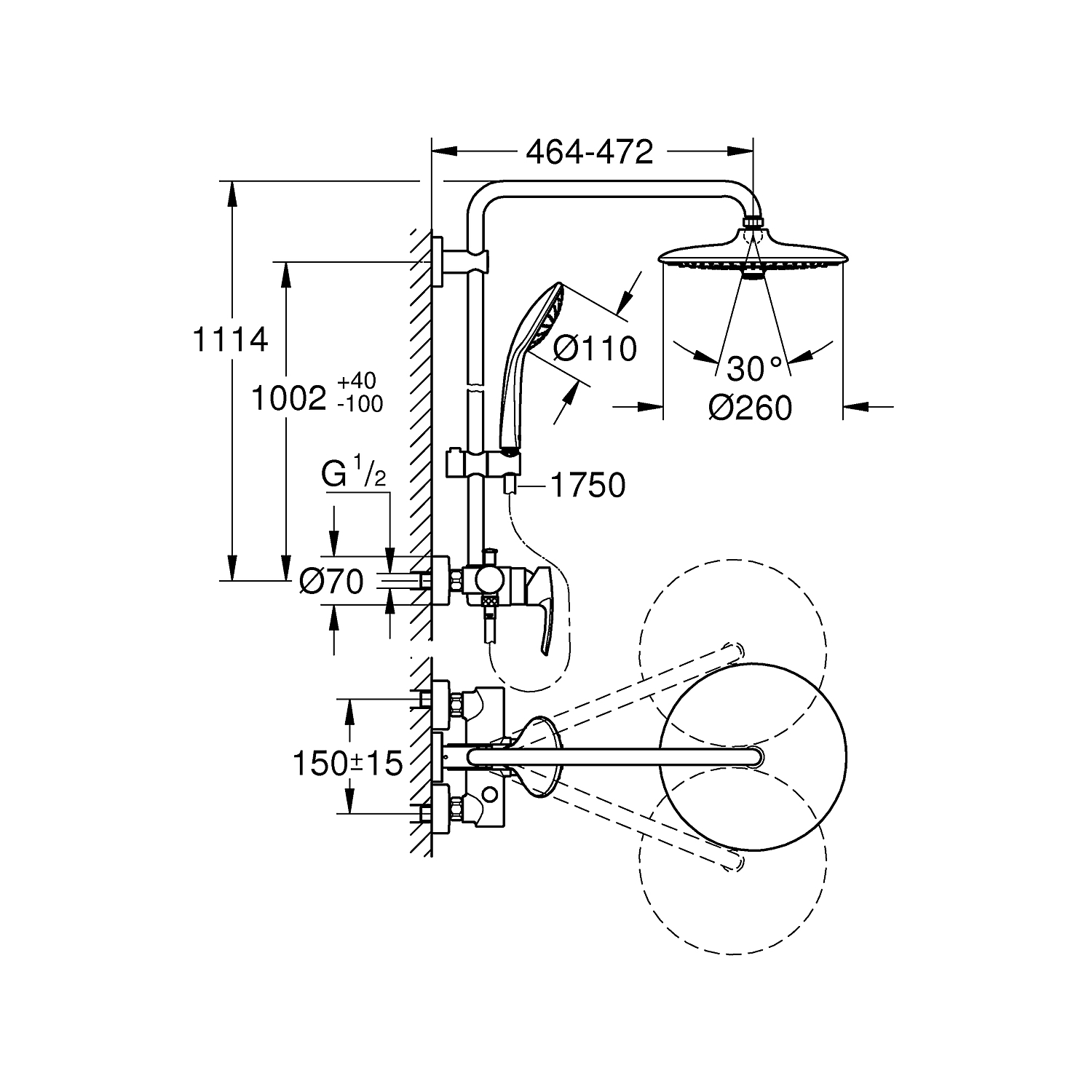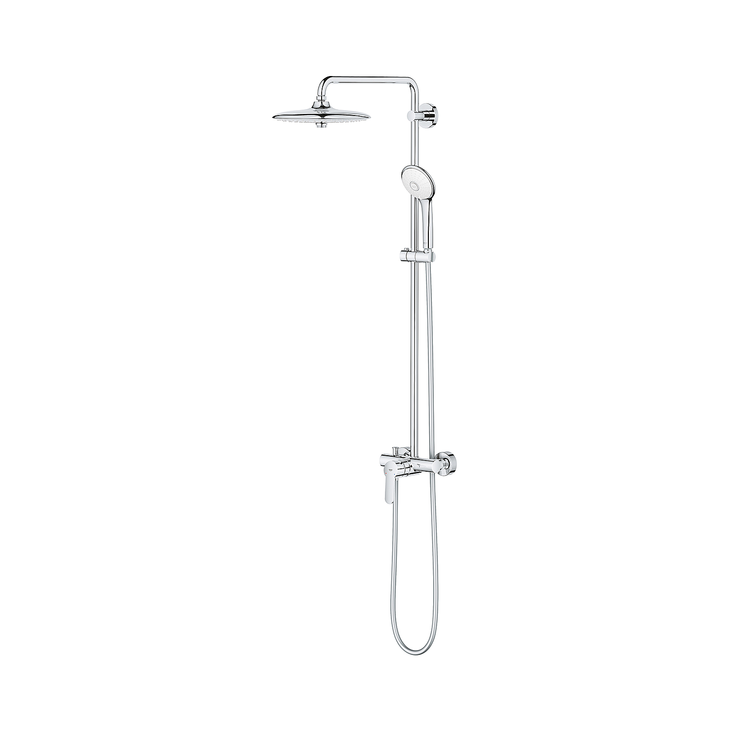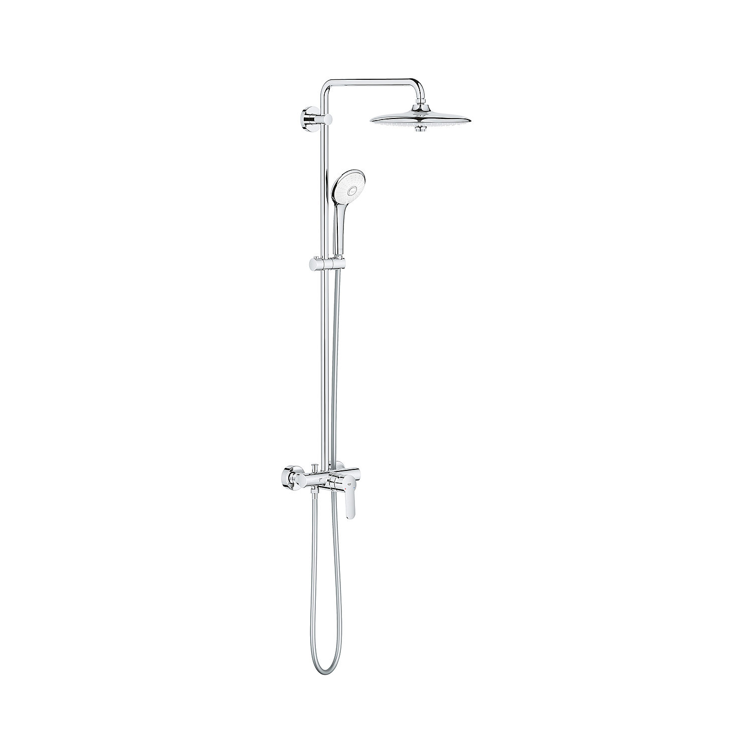 Многослойное покрытие из устойчивого к царапинам хрома GROHE StarLight имеет блеск, который сохраняется годами. А благодаря GROHE FastFixation его можно легко установить, используя имеющееся отверстие, поскольку верхний кронштейн регулируется. Стильная и безопасная душевая система GROHE Euphoria 260 с зоной струи, подходящей под любое настроение!
