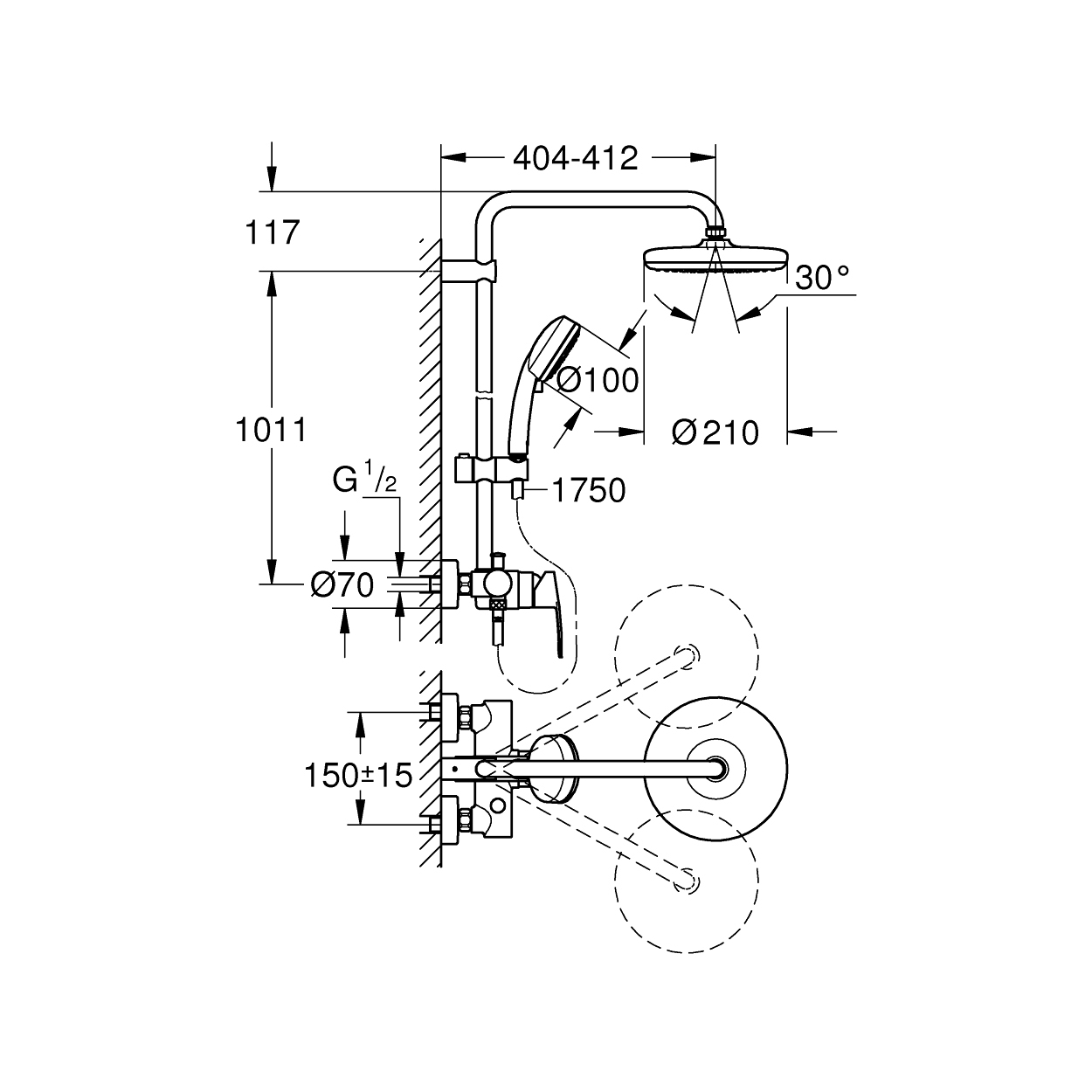 GROHE DreamSpray обеспечивает равномерный поток воды из каждой форсунки — идеально для успокаивающей струи Rain нового верхнего душа Tempesta 210 мм. 390-миллиметровый держатель верхнего душа даже поворачивается на 180° для дополнительной гибкости.
