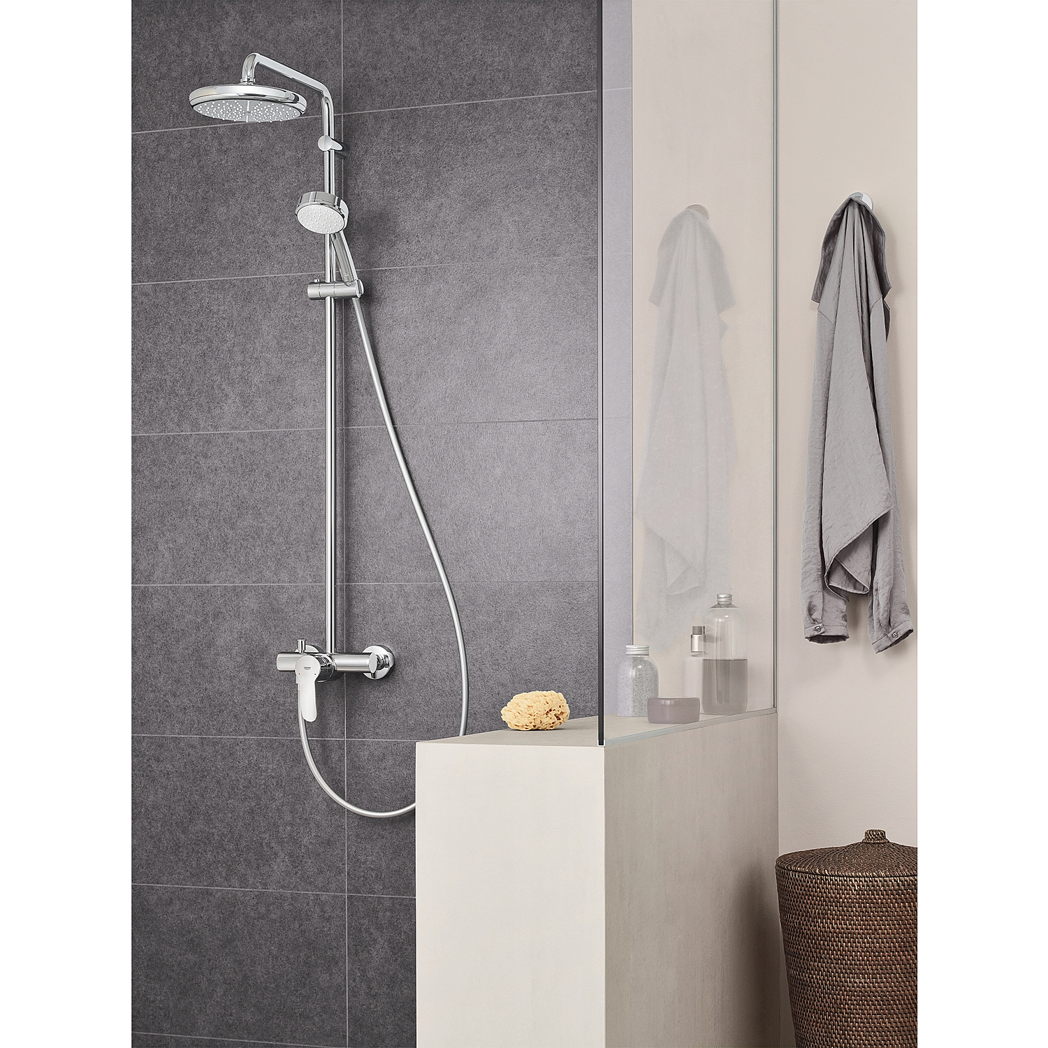 Однорычажная душевая система GROHE Tempesta Cosmopolitan 210 мгновенно добавит дизайнерский стиль и производительность в любую ванную комнату. Система оснащена передовыми технологиями GROHE.