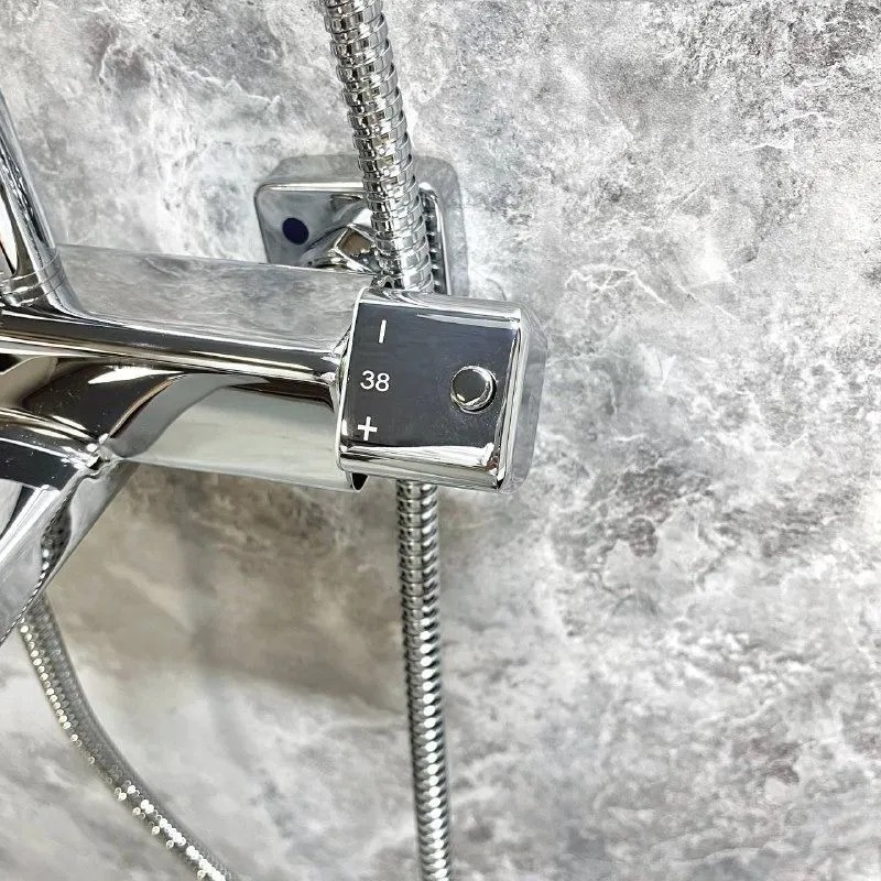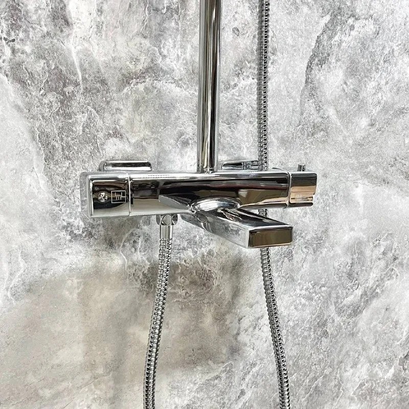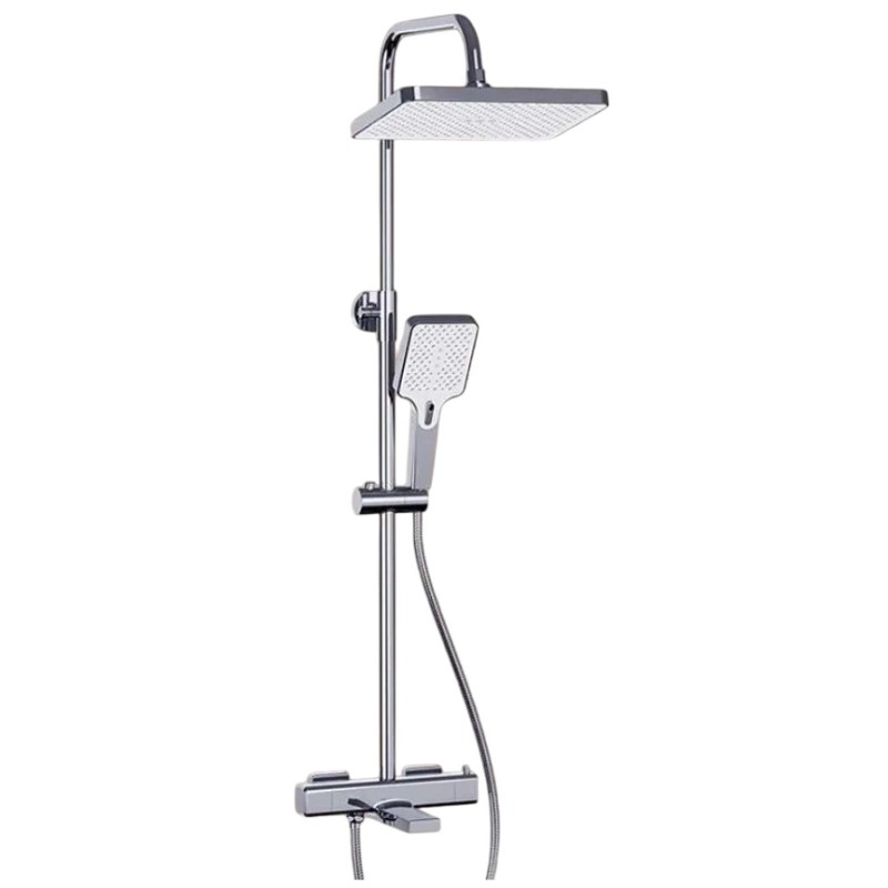 Душевая система Haiba HB24537 с термостатом хром — функциональная модель в хромированном исполнении с встроенным термостатом для поддержания заданной температуры воды. Изготовлена из латуни, устойчивой к коррозии. Включает поворотный излив, верхний душ, ручную лейку, штангу с регулируемым держателем и шланг длиной 1500 мм. Термостатический механизм обеспечивает безопасность и комфорт при использовании, предотвращая резкие перепады температуры. Управление осуществляется через эргономичные рычаги, а керамический картридж гарантирует надёжность и долговечность работы.