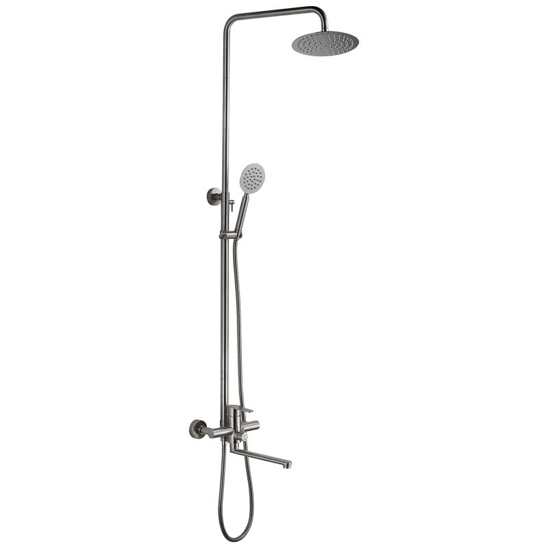 Душевая стойка Haiba HB24801 выполнена в современном стиле и изготовлена из нержавеющей стали. В комплект входят душевой шланг, душевая лейка, верхний душ, душевая штанга, крепление для лейки, эксцентрики. Места соединений шланга с лейкой и смесителем оснащены специальными подшипниками, которые препятствуют перекручиванию шланга.