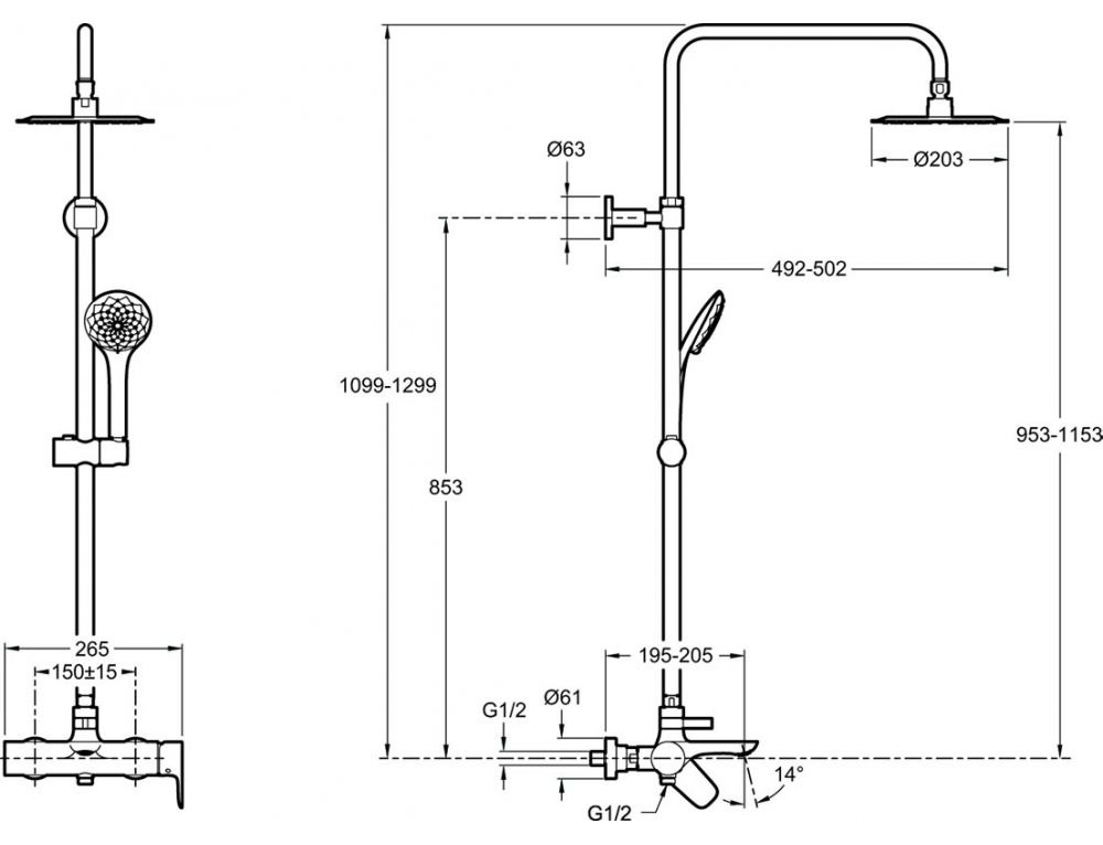 Душевая система Jacob Delafon Aleo E97825RU‑4‑CP в хромированном исполнении сочетает функциональность и современный дизайн. Система монтируется на стену и включает смеситель с изливом для ванны, верхний душ и ручной душ с держателем. Конструкция изготовлена из прочного металла, устойчивого к перепадам температур, и оснащена обратным клапаном для предотвращения переливания воды между выходами. Шланг имеет защиту от перекручивания, а лейка — эргономичную форму. Напор воды верхнего и ручного душа ограничен до 10 л/мин, смесителя для ванны — до 19 л/мин.