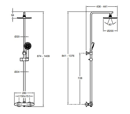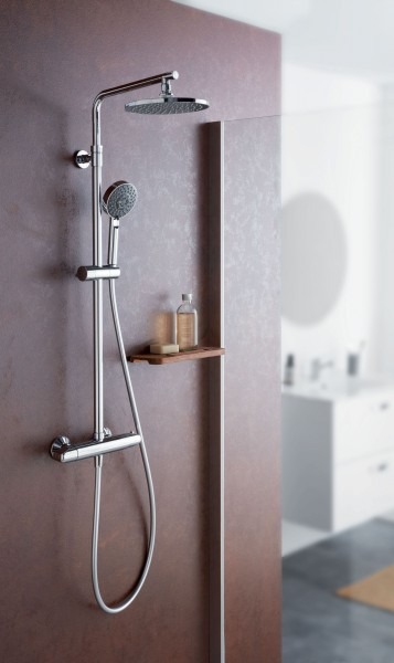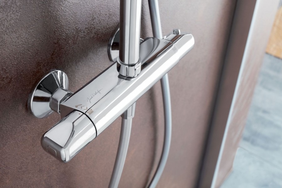 Душевая система Jacob Delafon Brive E24322‑CP с термостатом в хромированном исполнении представляет собой настенную конструкцию из латуни в современном стиле. Система оснащена термостатическим картриджем для точной регулировки и поддержания заданной температуры воды, межосевое расстояние составляет 150 мм. В комплект входят верхний душ диаметром 200 мм и ручной душ диаметром 100 мм с пятью режимами подачи воды. Предусмотрена регулируемая по высоте штанга (длина 76 см), нескручивающийся шланг длиной 160 см и встроенный переключатель потока в ручке напора. Напор воды ограничен до 10 л/мин, имеется обратный клапан для предотвращения переливания воды между выходами.